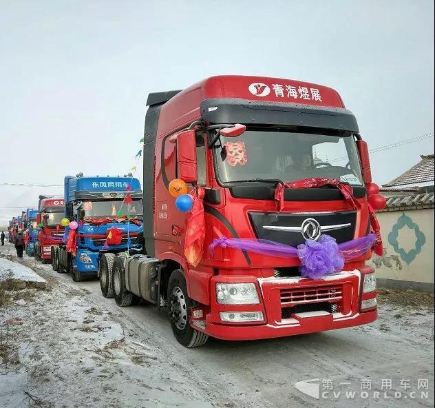 东风商用车青海煜展4S店在听说马师傅的想法后,当即提供四辆天龙旗舰,帮助马师傅组建超豪华的婚车车队!