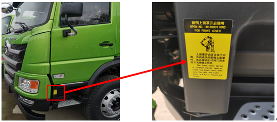 2、打开位于左上踏步垫内侧的上面罩开启开关(如下图),上面罩在气弹簧作用下自动打开。