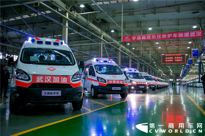 2020年2月5日,捐赠给武汉抗疫前线的10辆负压救护车顺利下线。1200公里路程,13个小时接力,宇通紧急支援火神山、雷神山医院,为重点疫区的疫情防控贡献宇通力量。政策响应、供给物资、极尽所能地帮助抗疫一线……宇通做到了!