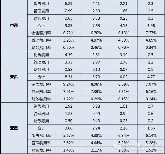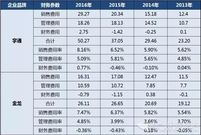 随着销售额的增长,尤其是新能源市场的拓展,中国客车企业2016年三项费用与三项费用率普遍增加,其中销售费用增加尤为明显。