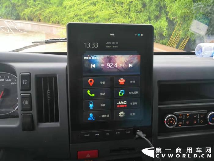 除此之外,当用户开车遇到紧急情况时,可通过智能大屏拨打江淮公司400服务电话;当驾驶人员出现超速、疲劳驾驶、超时停车等情况时,后台系统将进行报警提醒;还可通过查询及分析油耗数据,提醒驾驶员调整驾驶行为,节省整车油耗。