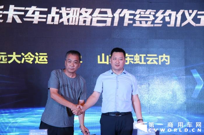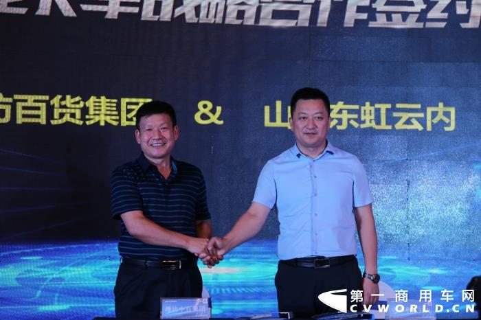 活动最后,东虹云内与潍坊远大冷云物流、潍坊百货集团签订了合作协议。交车仪式上,东虹云内还向终端客户交付了象征意义的车钥匙。